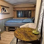 Die Ferienwohnung Haus Evelynchen auf Rädern Deutschhof verfügt über Annehmlichkeiten für Selbstversorger wie eine Küchenzeile und bietet außerdem einen Essbereich im Freien, in der die Gäste entspannt ihre Mahlzeiten einnehmen können.